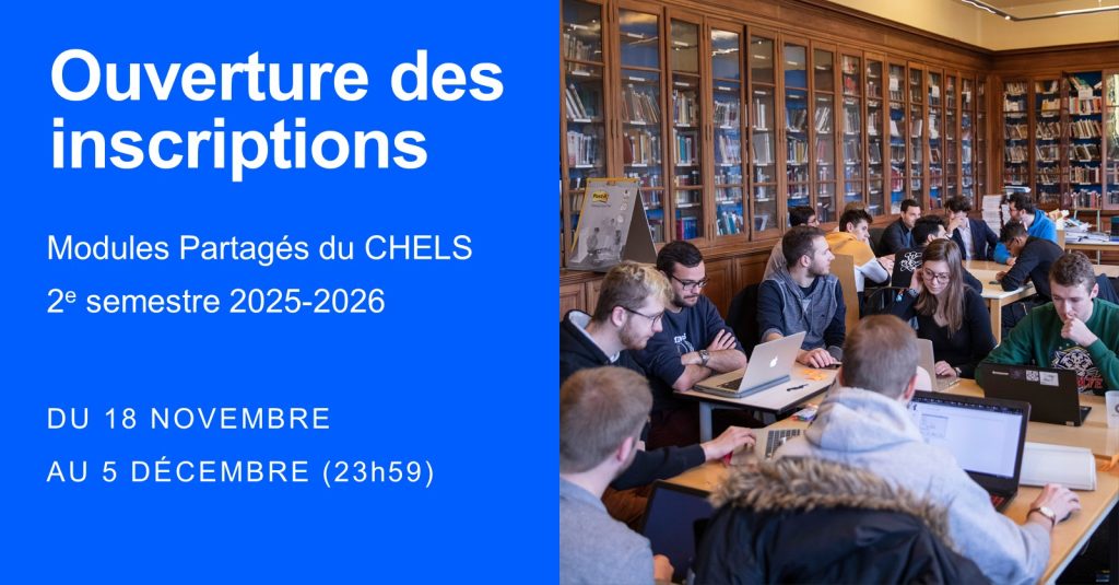 Modules Partagés du CHELS : ouverture des inscriptions pour le second semestre 2025-2026 : du 18 novembre au 5 décembre 2025 (23h59).