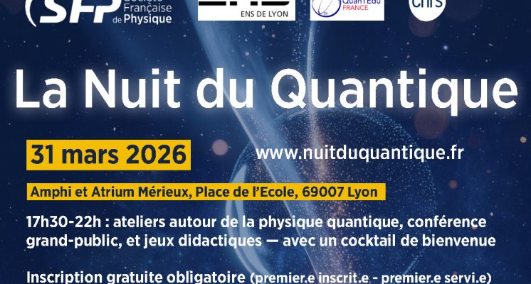 Le 31 mars l’ENS de Lyon accueillera la « Nuit du Quantique », de 17h30 à 22h dans l’Amphi et Atrium Mérieux (Place de l’Ecole, 69007 Lyon).